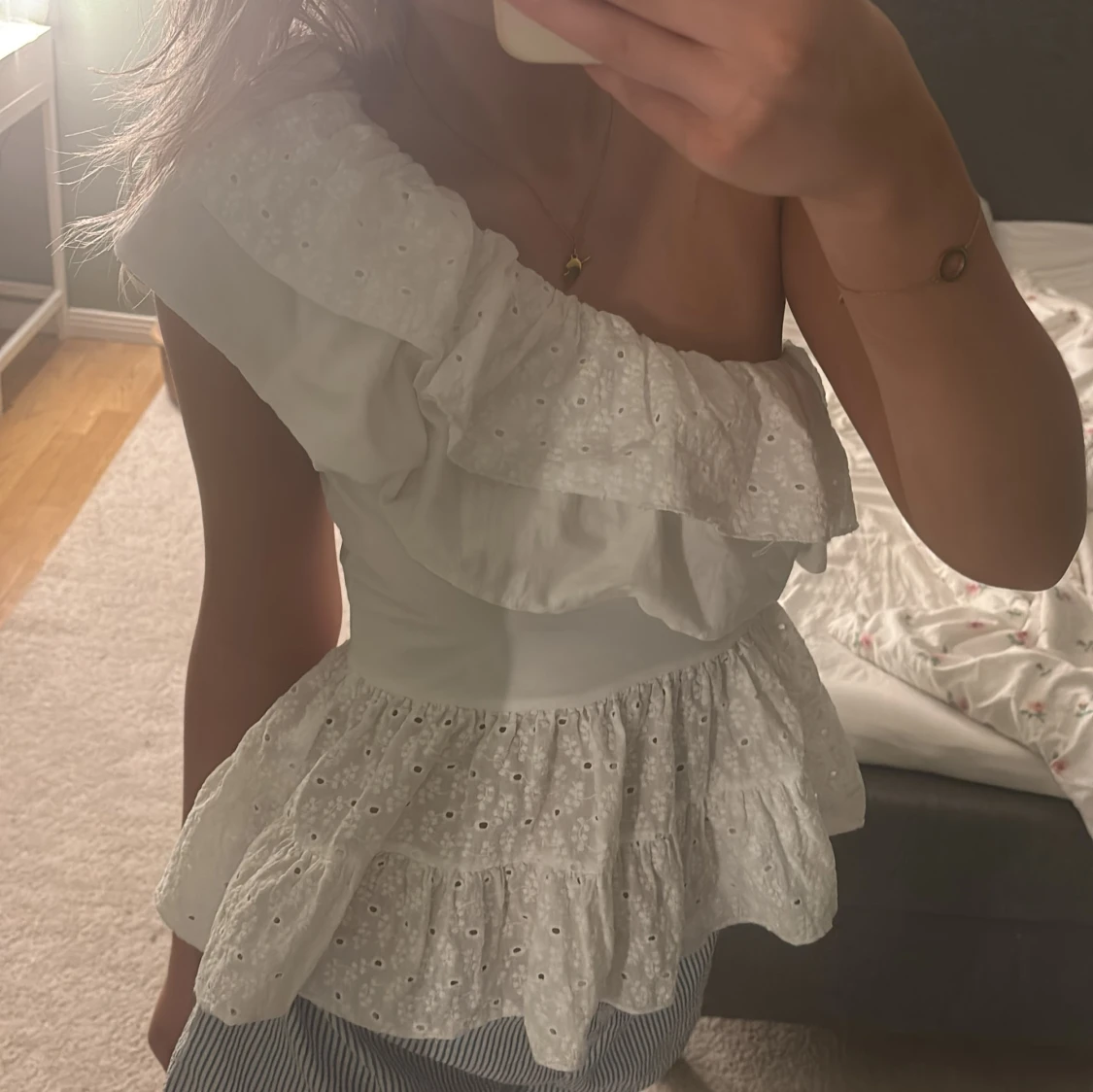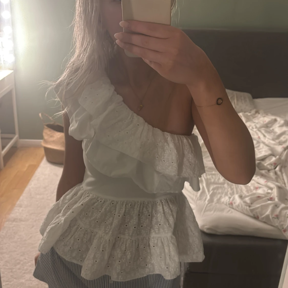 Säljer denna fina vita Zara blusen då den tyvärr inte kommer till användning. Använd max 2 gånger. Nytt skick.