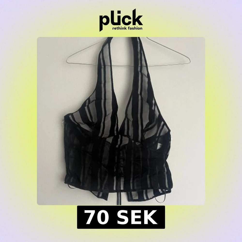 Snygg svart och transparent korsett med randigt mönster. Den har en djup urringning och snörning framtill för justerbar passform. Perfekt för en kväll ute eller en speciell tillställning.