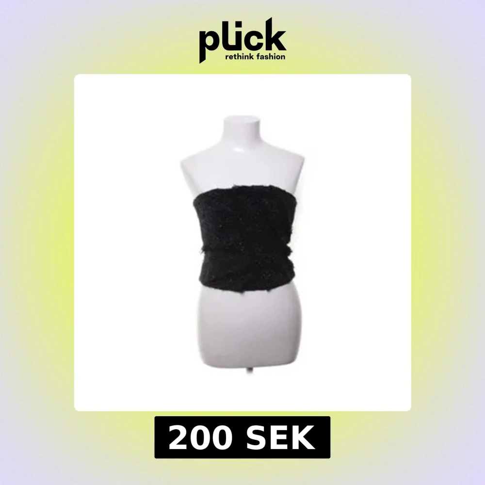Snygg svart tubtopp med glittrig yta. Perfekt för en kväll ute eller festliga tillfällen. Den är axelbandslös och har en trendig look som drar blickarna till sig.