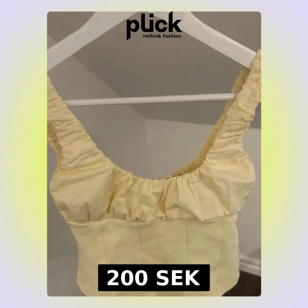 Ljusgul topp med breda och rynkade axelband. Jättefin men har aldrig kommit till användning