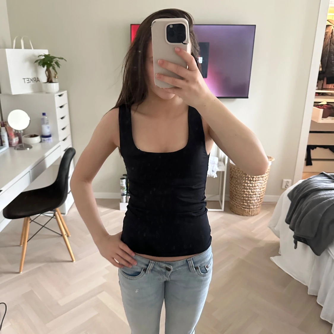 Jätte fin topp och den är använd 2 gånger. Helt nytt skick. Storlek S. Lite strechingate material med. Typ som skims materialet eller något i den stilen
