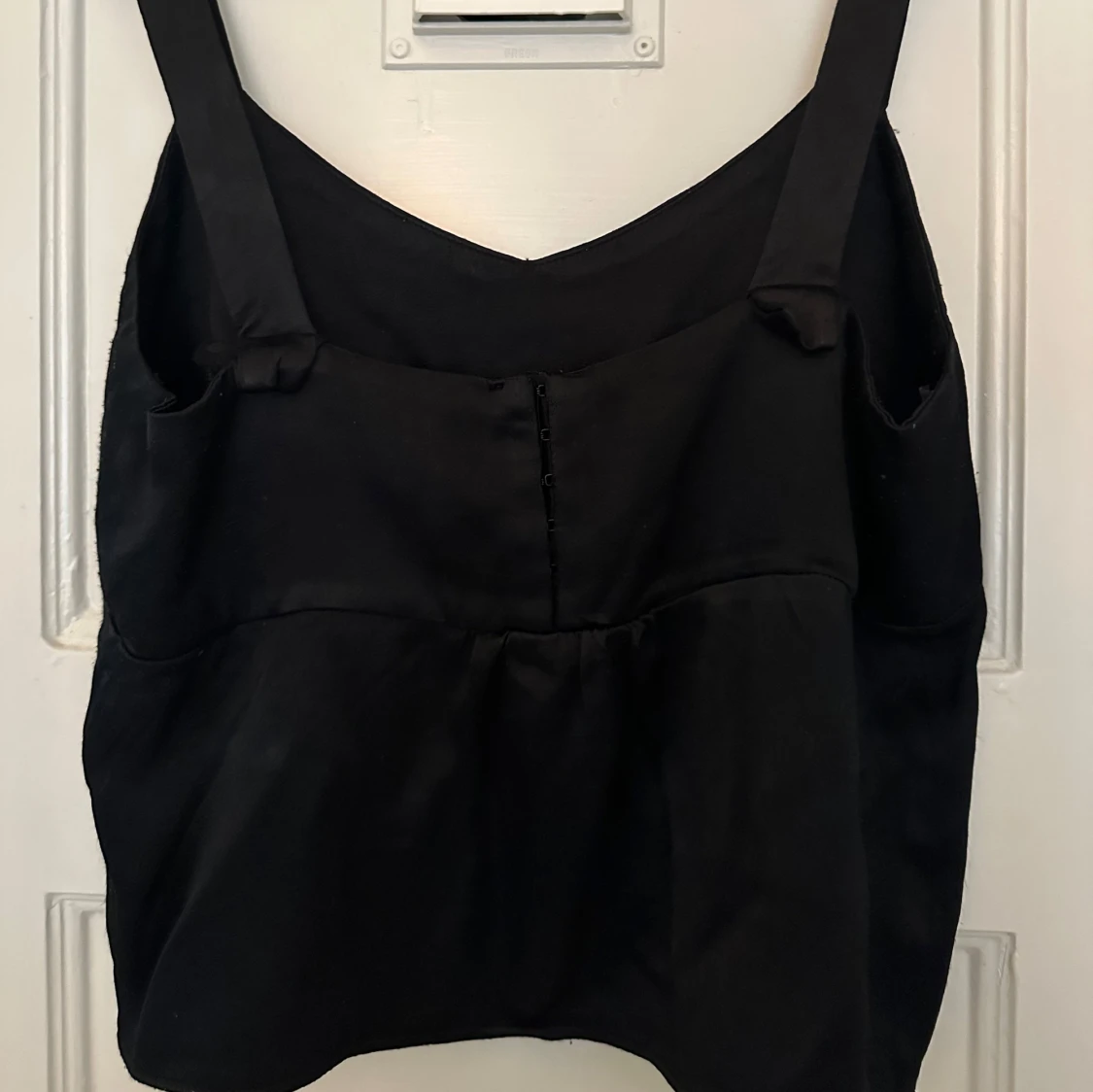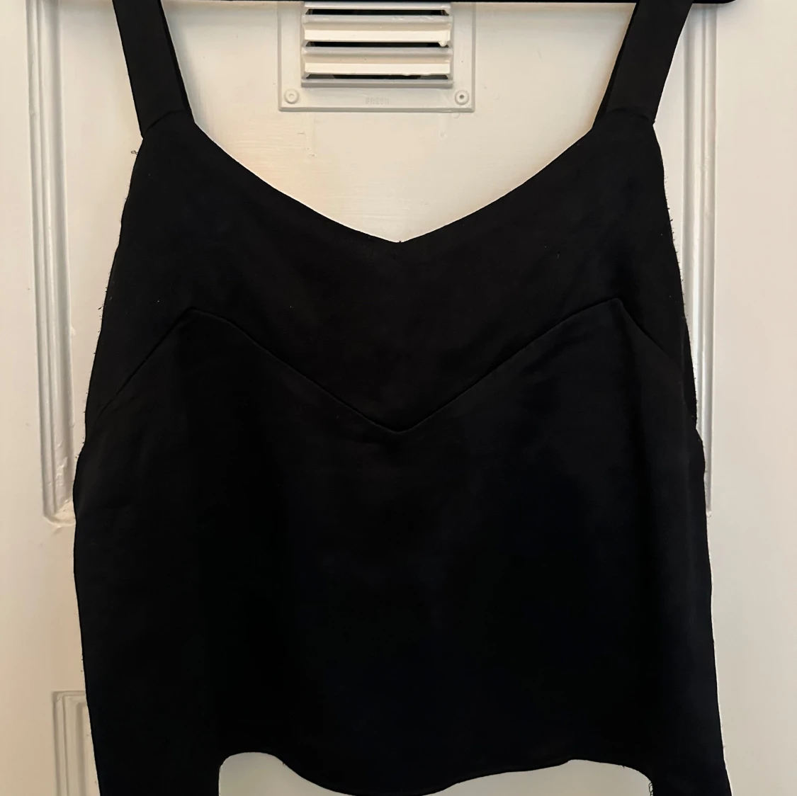 Snyggt svart linne i satin med breda axelband och en elegant v-ringning. Perfekt för en stilren look. Linnet har en slät yta och en bekväm passform.