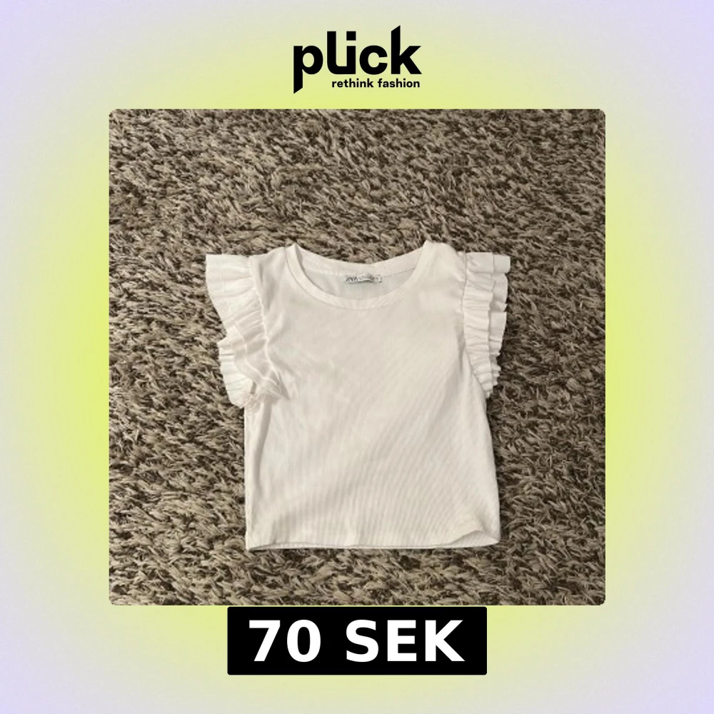 Superfin vit ribbad topp från Zara med korta ärmar och volangdetaljer på axlarna. Toppen har rund halsringning och jätte gullig. Ganska kort i längden. Perfekt för dig som gillar en söt och stilren look.