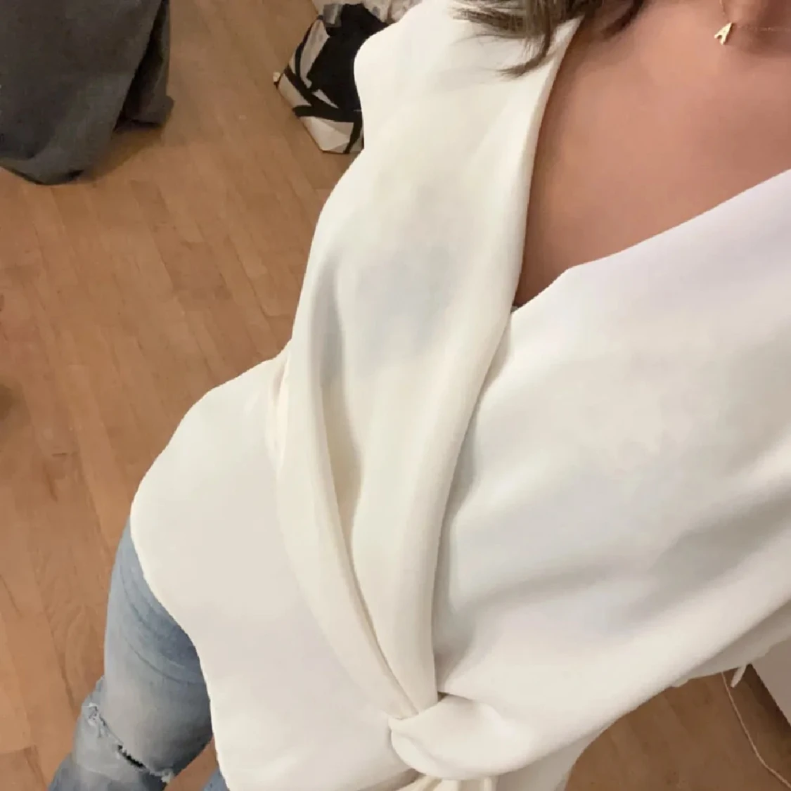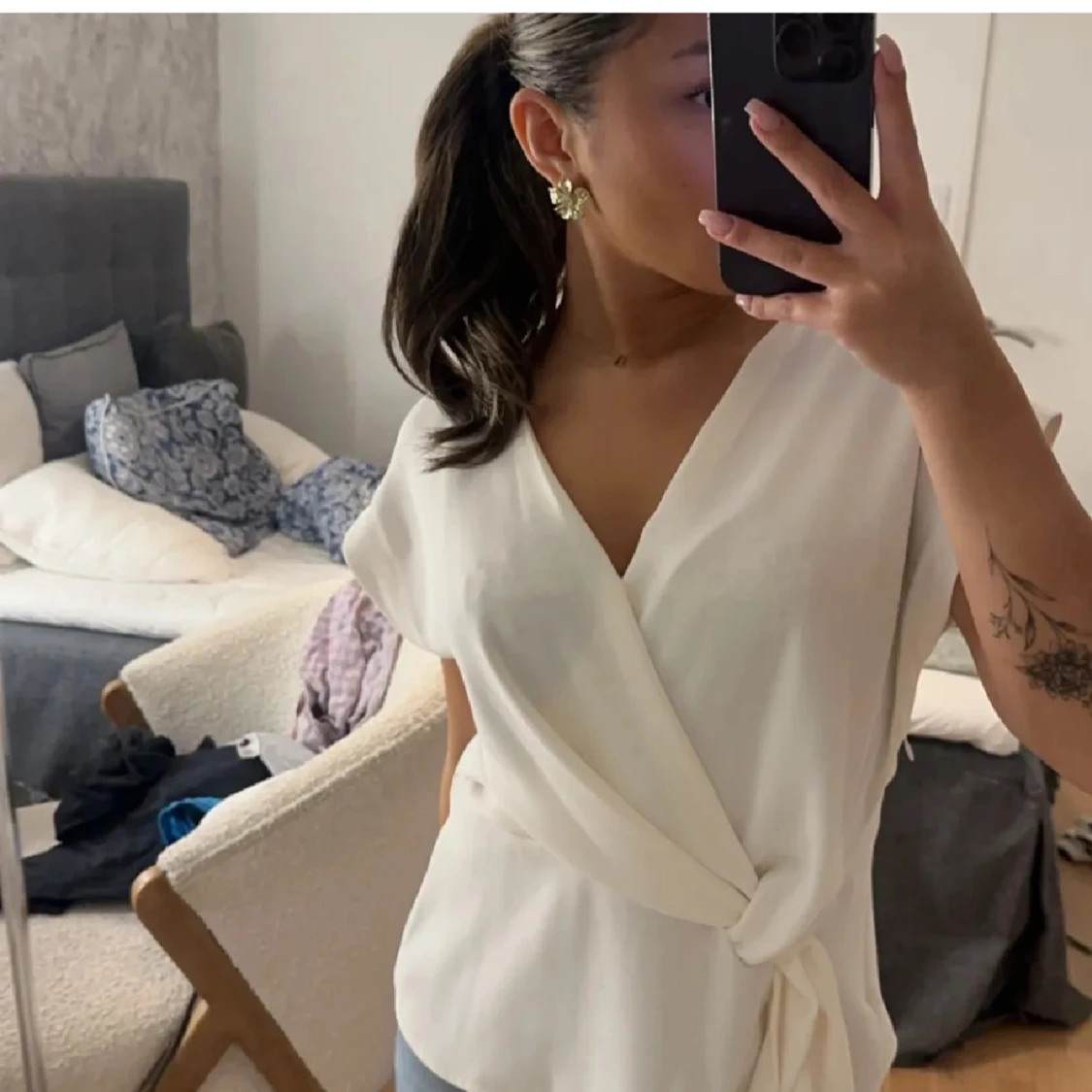Säljer en stilren vit omlottblus från Zara!! Helt slutsåld, storlek s.. säljer den för 200kr💕