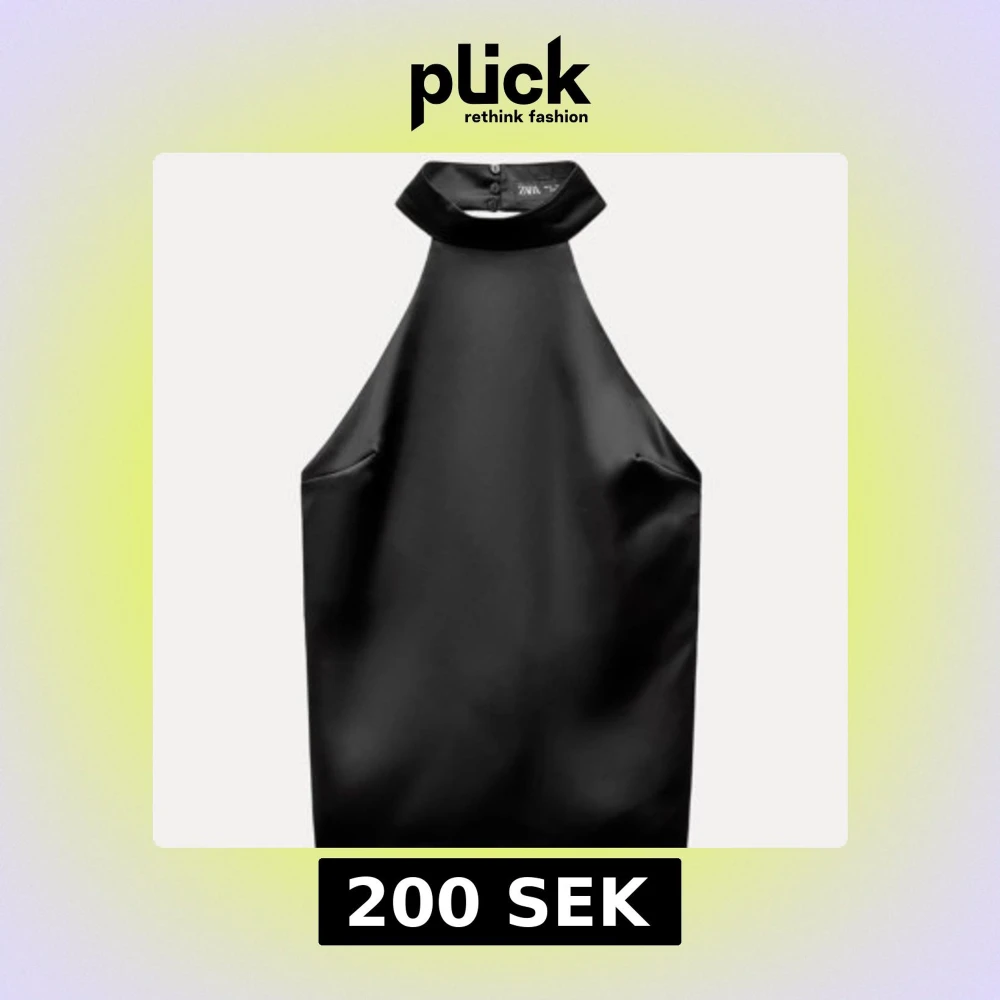 Elegant svart halterneck topp från Zara i satin med hög krage och knappar bak. Den har en stor rosett i ryggen som ger en extra touch av stil. Perfekt för festligare tillfällen! Aldrig använd då den inte passar mig.