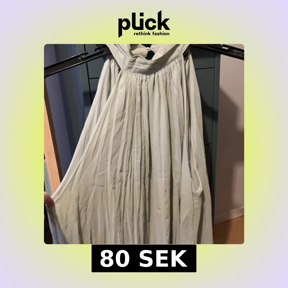 Snygg grön ärmlös topp från Zara med en elegant krage och knappdetalj i nacken. Klänningen har ett lätt plisserat tyg som ger en fin struktur och rörelse. Perfekt för en stilren look.