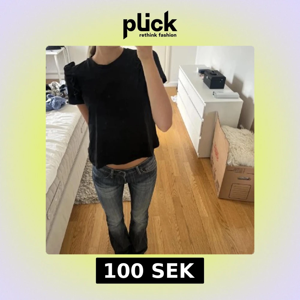 Snygg svart t-shirt från Zara med volangdetaljer på ärmarna. 🥰