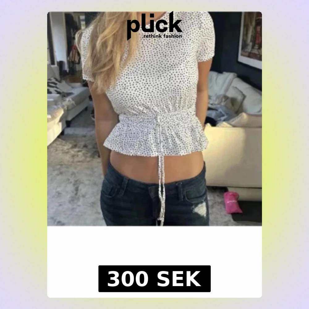 Supersöt vit topp med små svarta prickar och snörning i midjan som ger en peplum-effekt. Kortärmad och croppad modell som passar perfekt till jeans eller kjol. Tunn och luftig, perfekt för varma dagar.