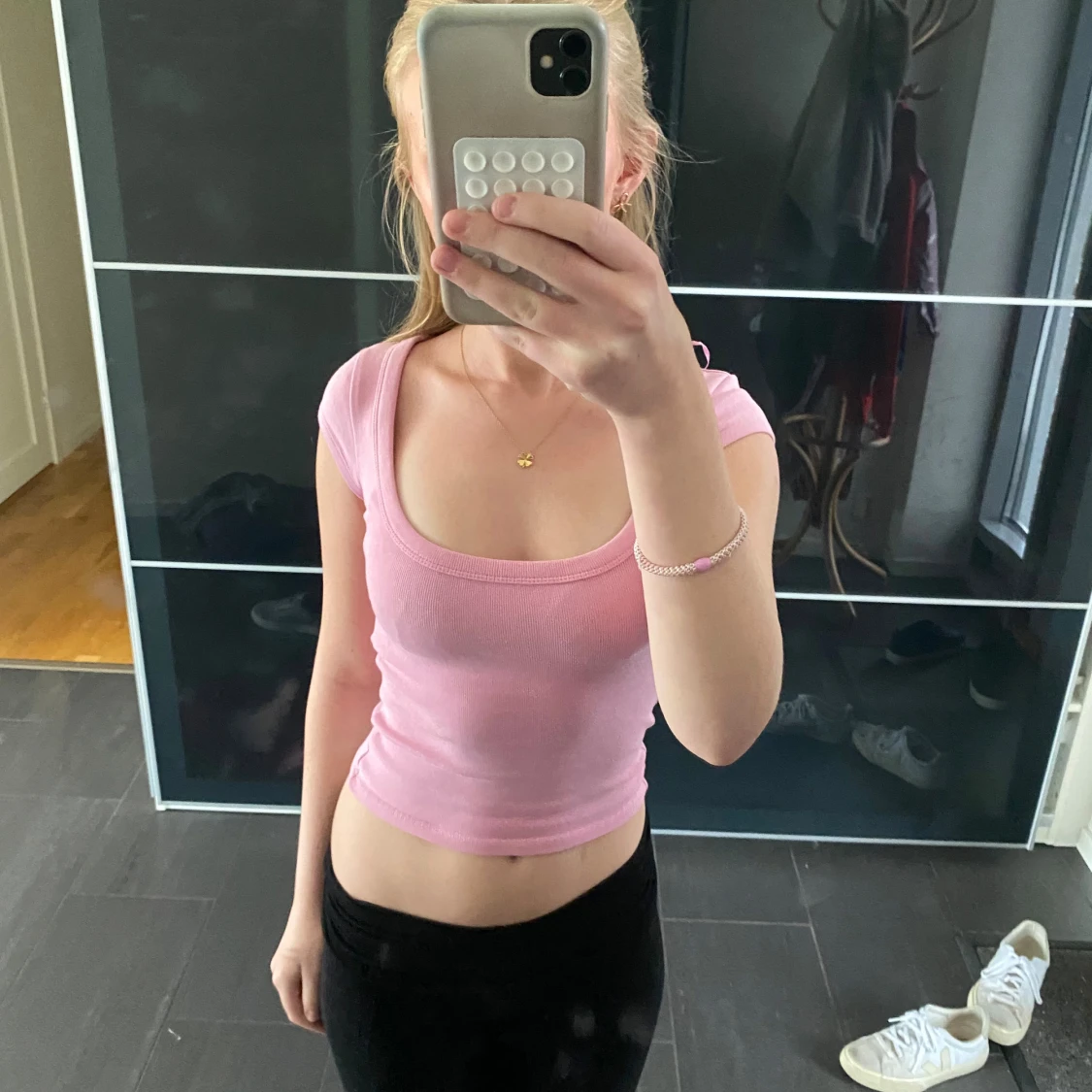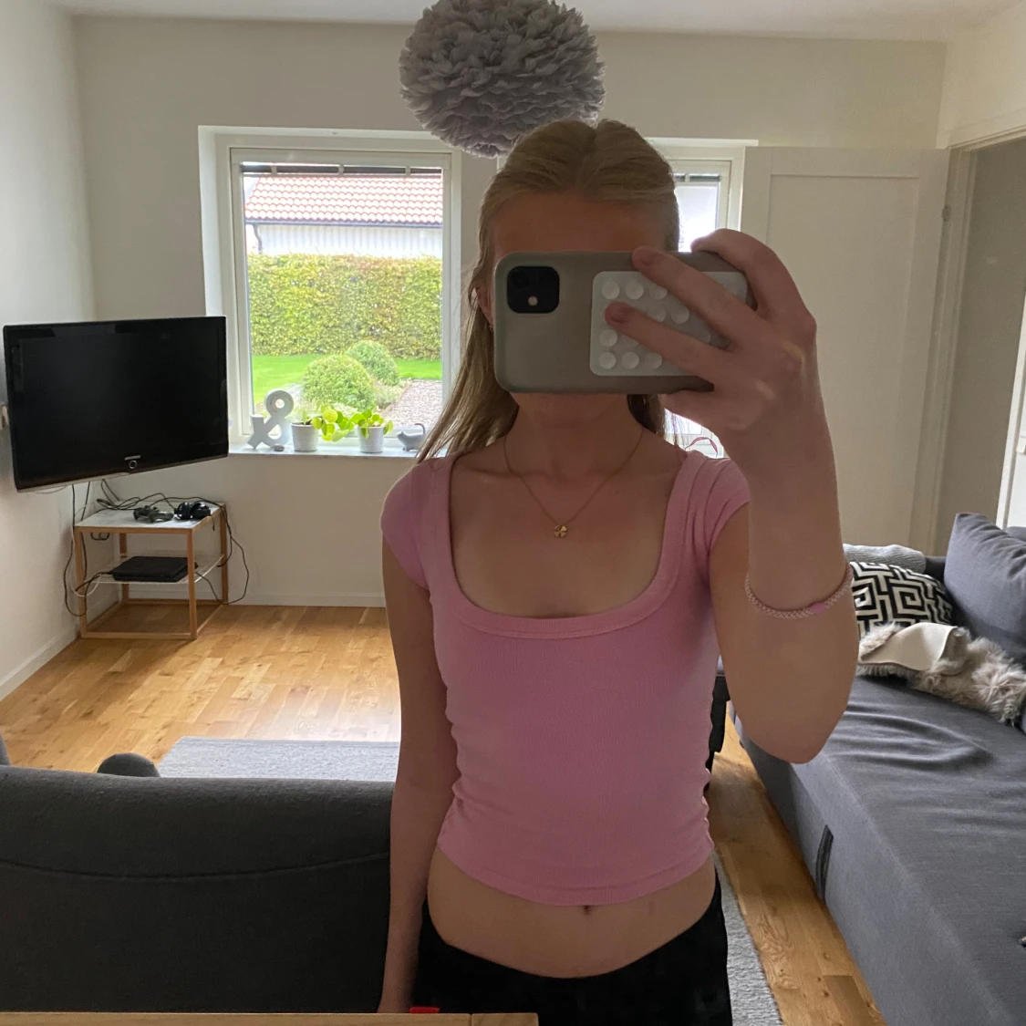 Säljer en ljusrosa croppad topp från Zara med ribbad struktur. Toppen har korta ärmar och en snygg, djup fyrkantig ringning. Perfekt att matcha med jeans eller kjol för en trendig look. Aldrig använd.💞