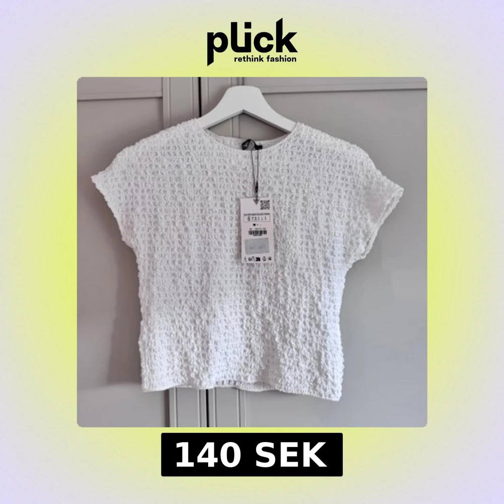 Vit topp från Zara med korta ärmar och en cool, strukturerad yta. Helt ny med prislapp kvar.