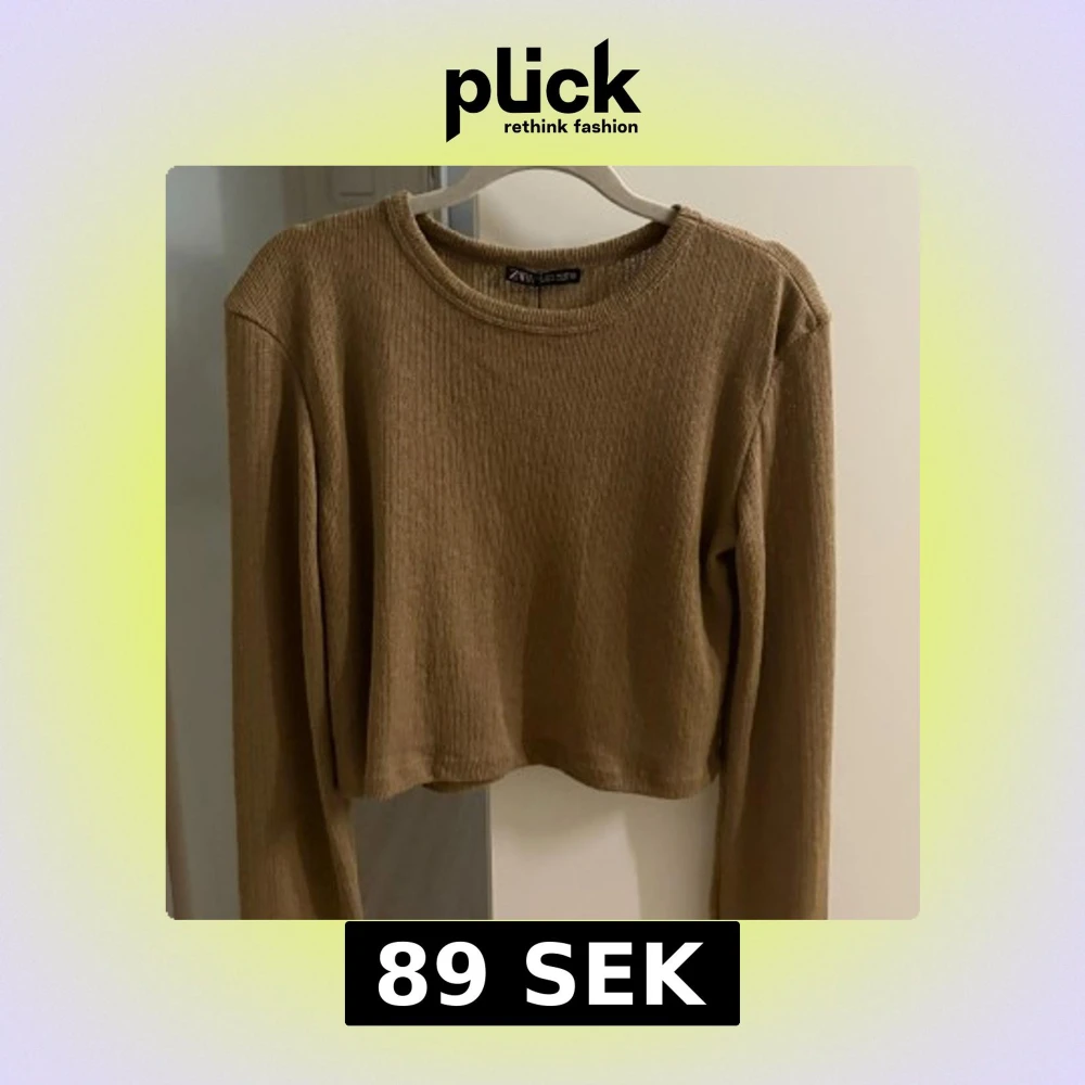Säljer en beige ribbad tröja från Zara. Den är croppad med långa ärmar och har en rund halsringning. Den är i storlek L men jag bär S kläder och ni ser hur den sitter på mig. Den har fortfarande prislappen på så aldrig använd💕