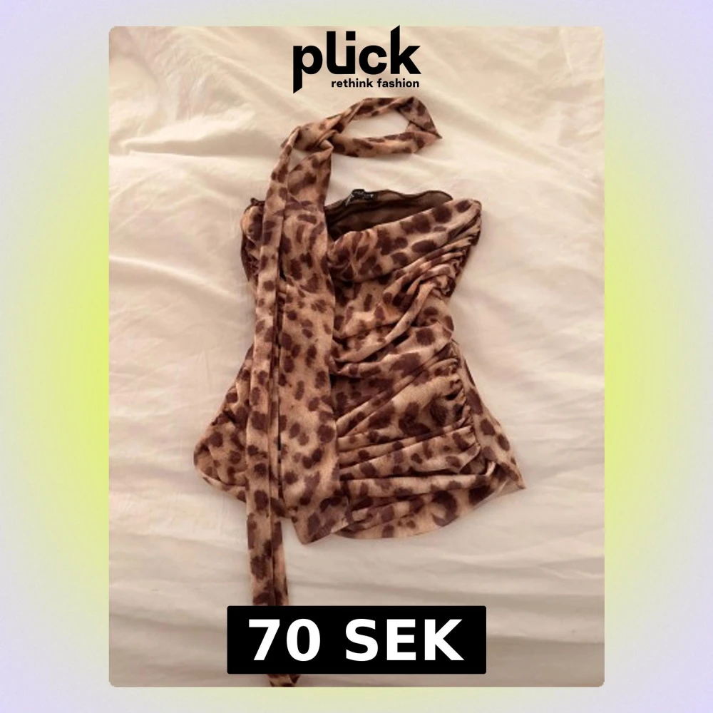 Säljer en leopardmönstrad bandeau tubtopp från Zara med bruna och beige toner. Toppen är axelbandslös med snygga rynkade detaljer och ett matchande knytband.