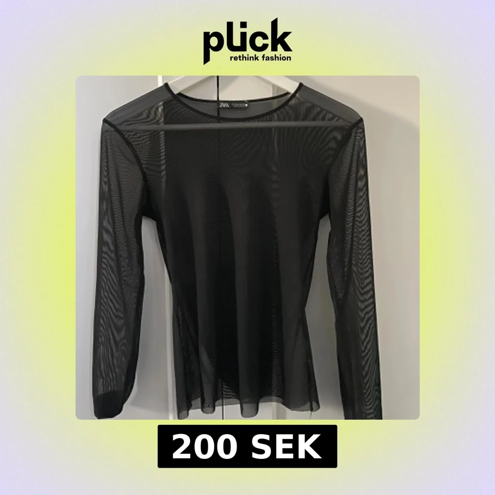 Säljer en svart mesh topp från Zara med lång ärm och rund halsringning. Toppen är helt genomskinlig och har en tight passform.