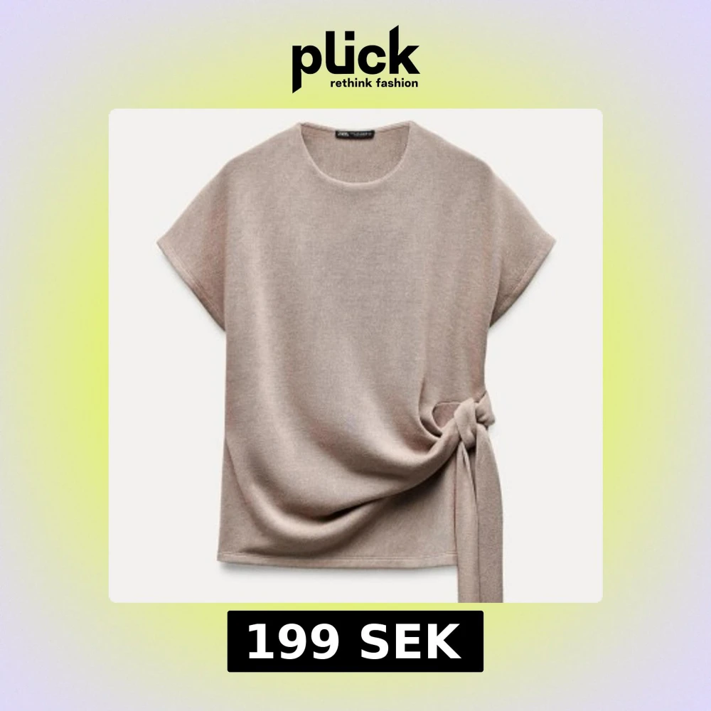 Snygg beige topp från Zara med korta ärmar och en stilren knytning i sidan. Perfekt för en chic och avslappnad look.