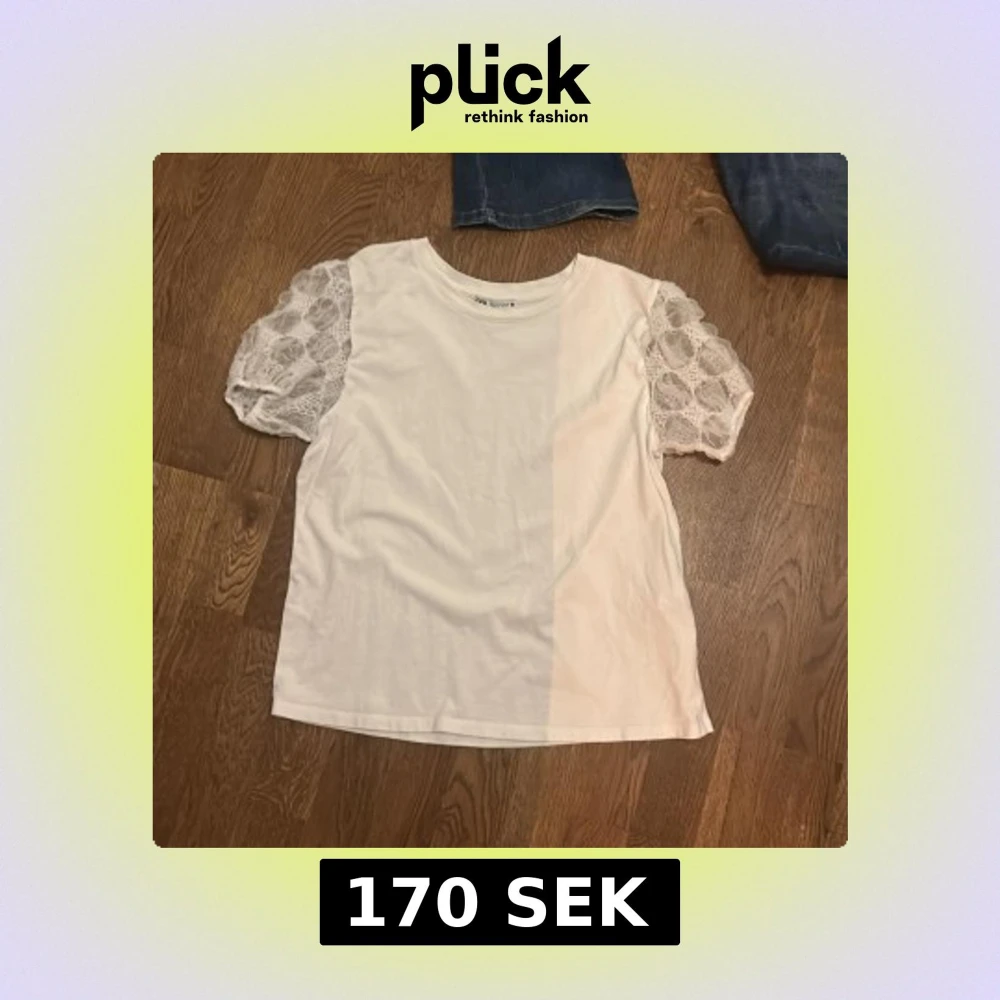 Supersöt vit topp från Zara med puffiga korta ärmar i transparent spets och blommigt mönster. Kroppen är i mjuk bomull och ärmarna ger en romantisk vibe. Perfekt att styla med jeans eller kjol för en trendig look💕