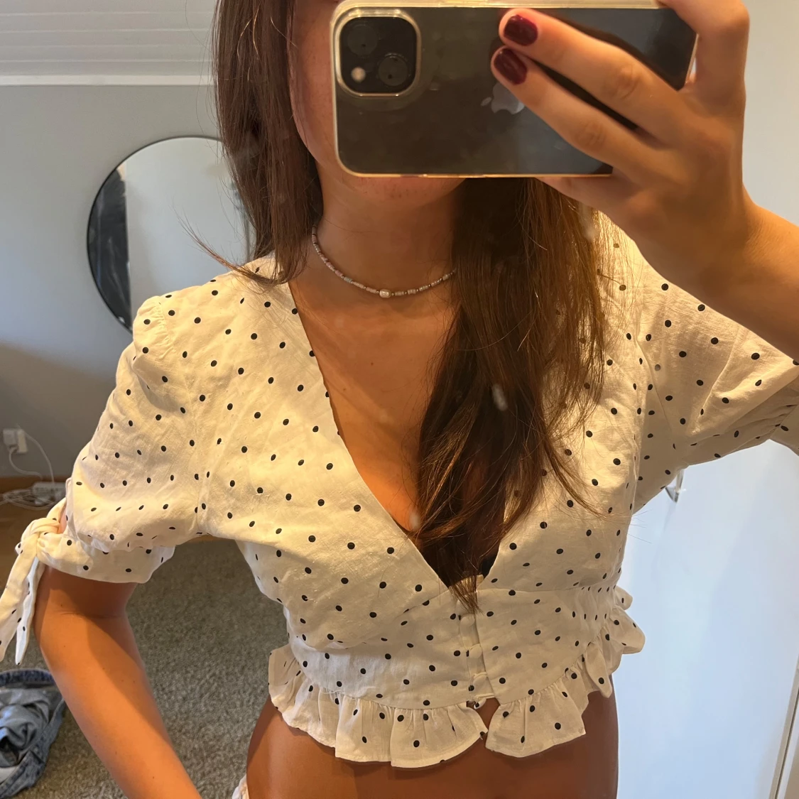 Supersöt vit blus med svarta prickar. Från Zara. Aldrig använd .