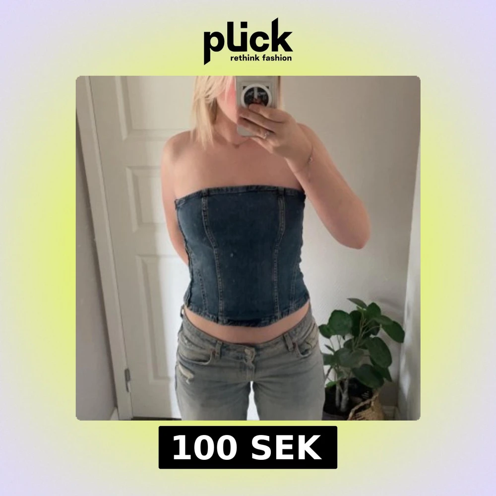Säljer en snygg jeans tubtopp från Zara i klassisk blå denim. Toppen är axelbandslös och har en croppad passform med markerade sömmar som ger en cool look. Perfekt till sommarens outfits och lätt att matcha med både kjol och byxor. Använd fåtal gånger