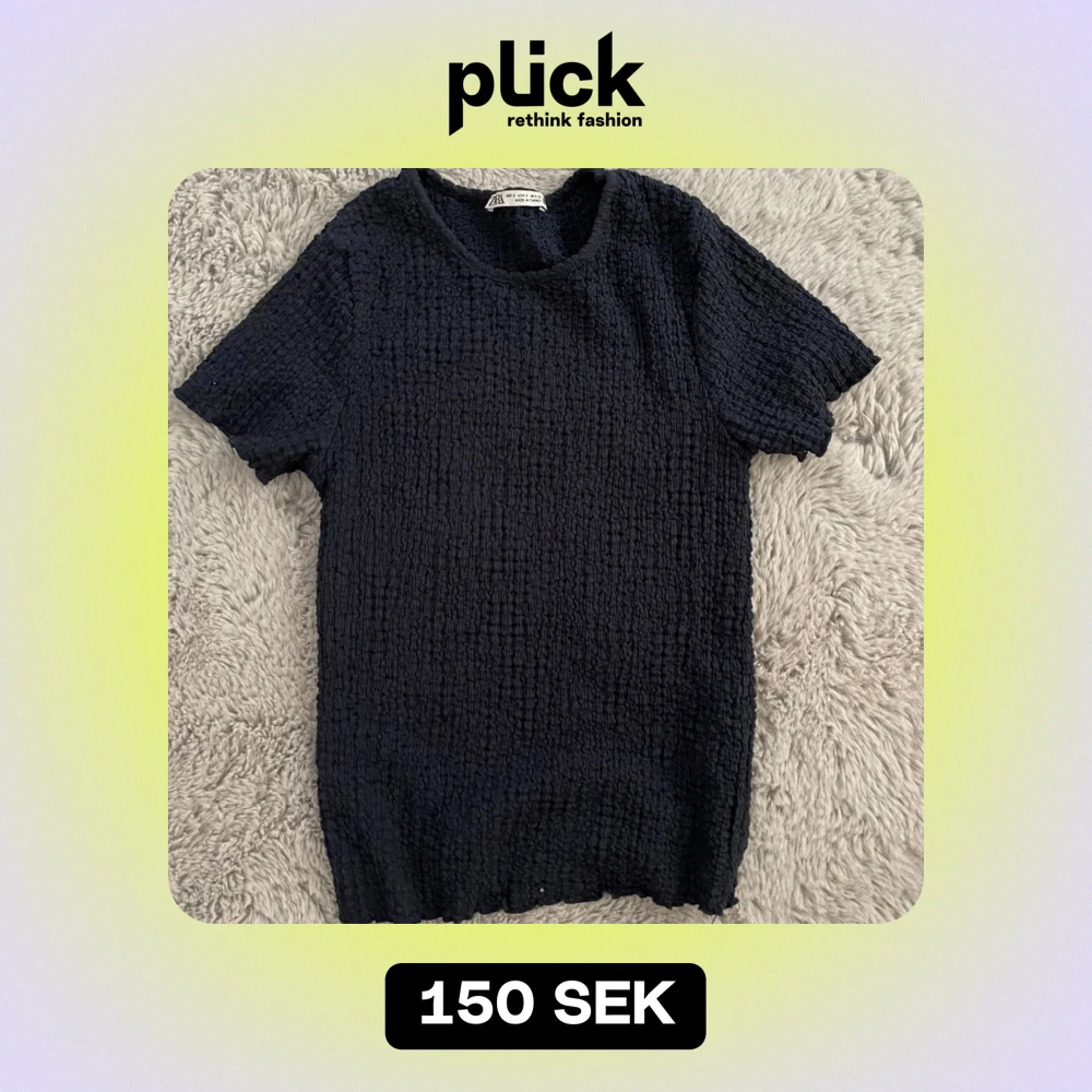 Säljer en svart ribbad topp från Zara i storlek S. Toppen har en texturerad yta och korta ärmar, perfekt för både vardag och fest. Den är tillverkad i Turkiet och har en bekväm passform. Passar bra till jeans eller kjol för en stilren look.