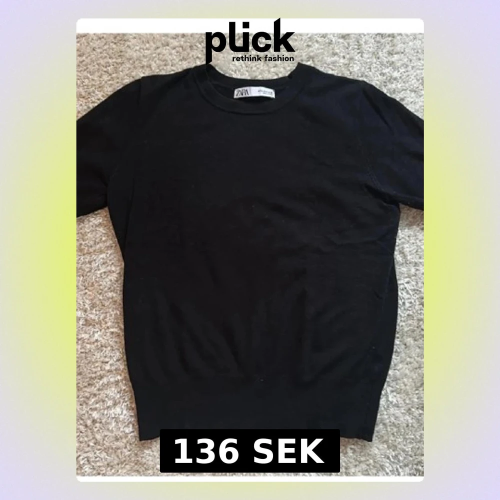 En stilren svart topp från Zara med rund hals och korta ärmar. Toppen är i mjuk bomull och har en klassisk, normal passform som funkar till många olika looks. Perfekt för dig som gillar enkla och snygga basplagg.
