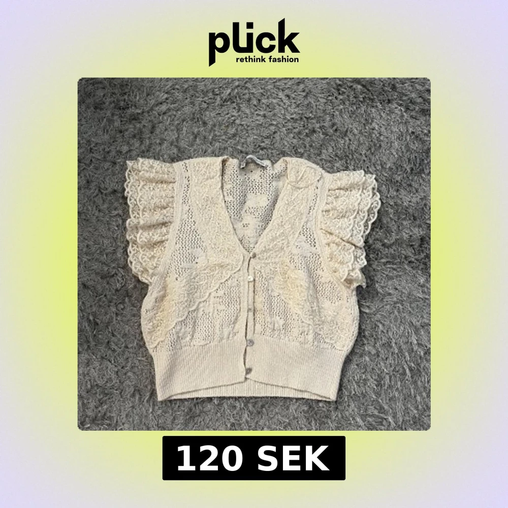 Supersöt vit blus från Zara med volangärmar och v-ringning. Blusen är stickad med spetsdetaljer och knappar framtill. Perfekt för dig som gillar romantisk och vintage-inspirerad stil. Luftig och lätt, passar till både jeans och kjol. Storlek m men passar mig som har xs