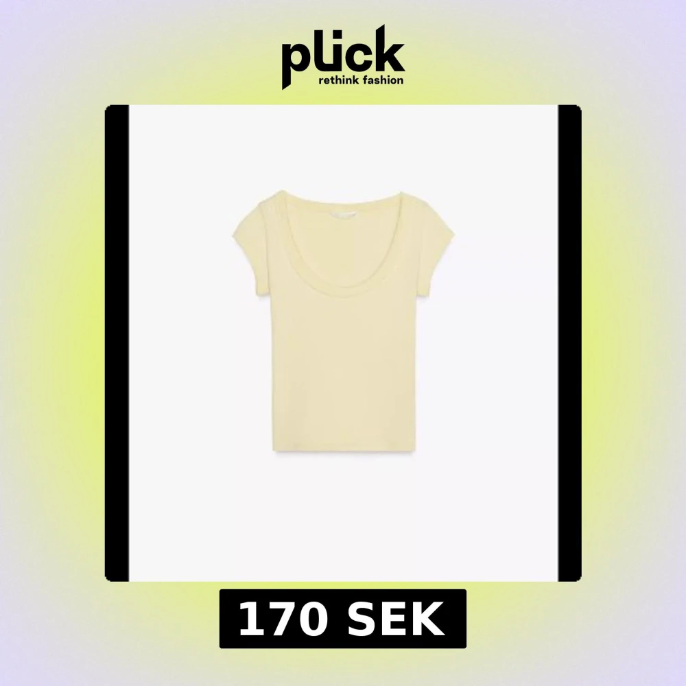 En ljusgul croppad t-shirt med rund, djup ringning och korta ärmar. Perfekt för varma dagar och enkel att matcha med! Slutsåld på hemsidan och helt ny med prislapp kvar!💕💕