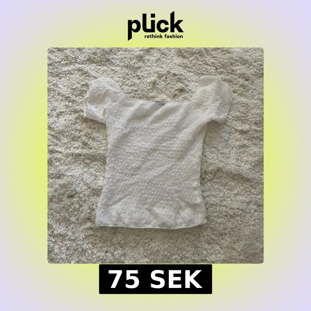 Supersöt vit topp från Zara med offshoulder och korta ärmar. Tunt, vågigt tyg med struktur som ger en cool look. Perfekt till jeans eller kjol när du vill ha något enkelt men ändå speciell🤍