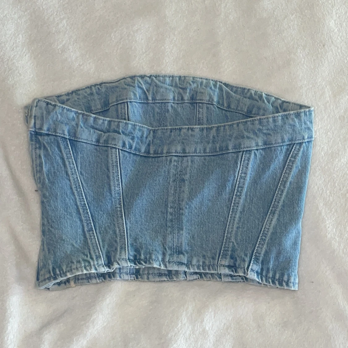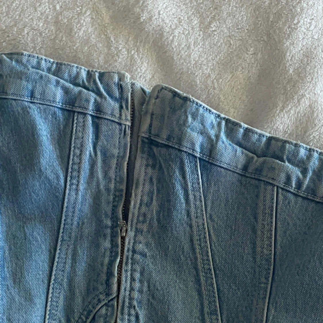 Ljusblå jeanskorsett från Zara i storlek S. Stängs med dragkedja i sidan. Ej använd och pris kan diskuteras