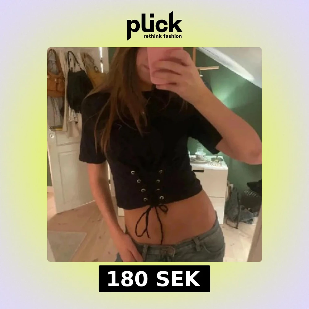 Snygg svart topp med korta ärmar och cool snörningsdetalj framtill. T-shirten har rund halsringning och snörningen ger en edgy vibe. Perfekt att matcha med jeans eller kjol för en trendig look.