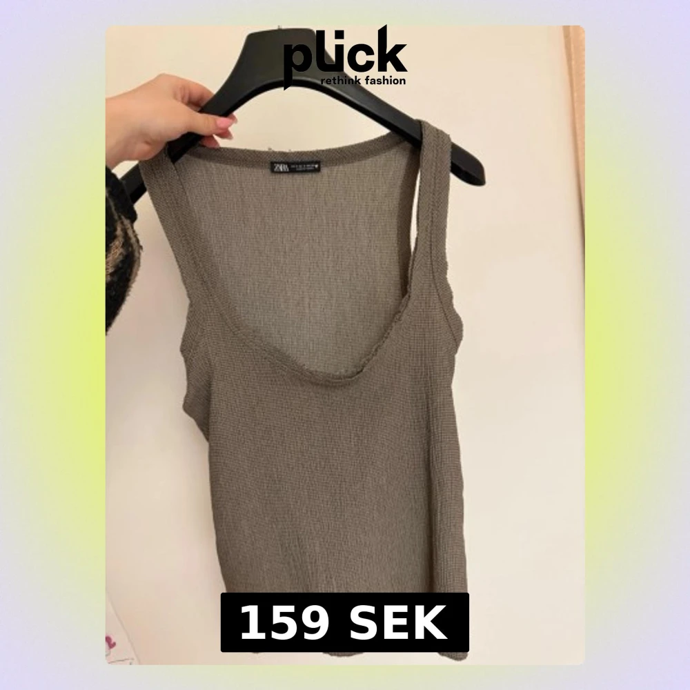 Säljer en beige ribbad linnetopp från Zara med djup rundringning och breda axelband. Toppen har en lätt strukturerad yta och är perfekt för varma dagar. Enkel att styla till olika outfits och superbekväm att bära.