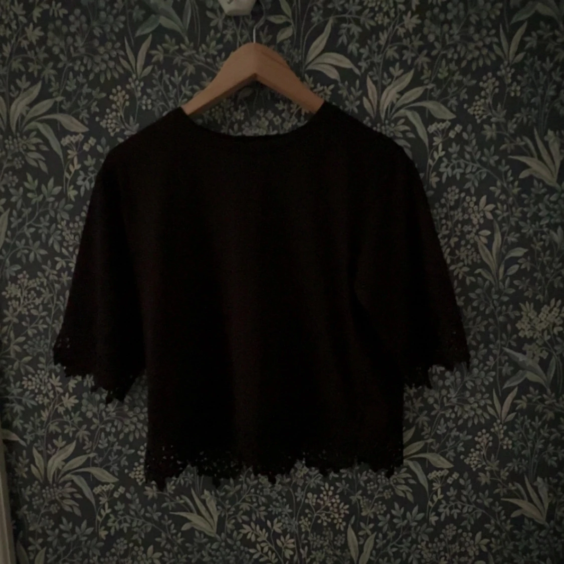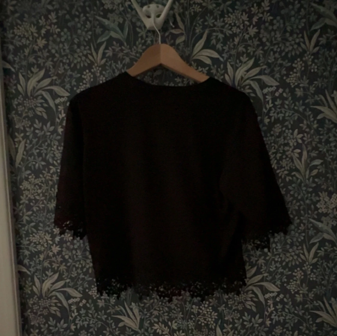 säljer denna supersnygga toppen från Zara med spetsdetaljer i storlek S! säljer pga att jag inte får användning av den längre! skriv för bättre bilder på eller om du har några frågor! 💗