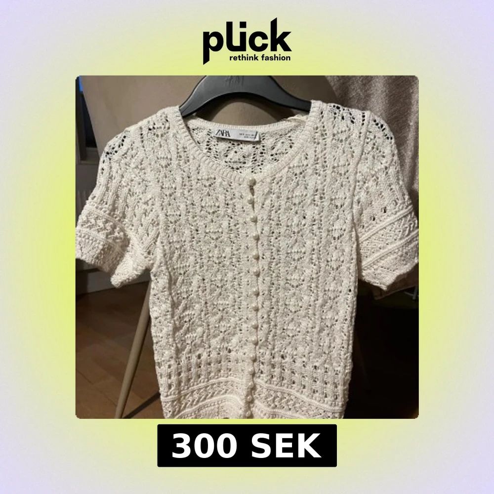 Supersöt vit stickad blus från Zara med korta ärmar. Säljer då den inte kommer till användning. Endast använd 1 gång. Inga defekter. Köptes för 400kr. Finns ej att köpa längre.