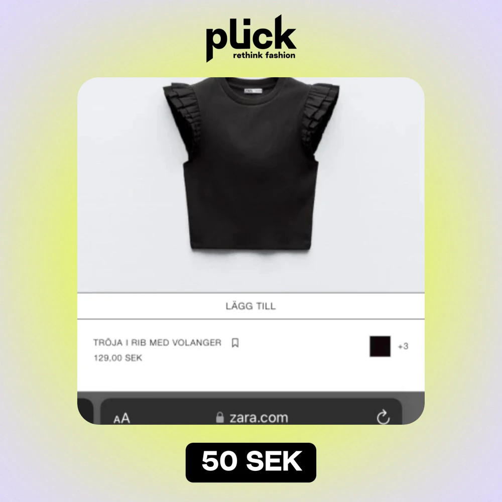 Säljer en ribbad volangtopp från zara i storlek L. Den är dock liten i storlek så den sitter bra på mig som vanligtvis bär s. I bra skick använd 2-3gånger.