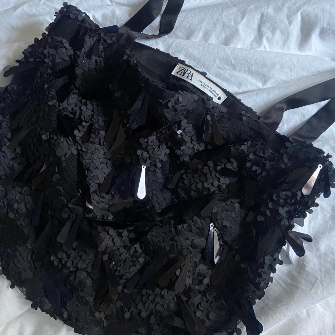 Säljer nu denna fest toppen från Zara! Använd endast vid ett tillfälle⚡️ storlek xs💖 Finns ej att köpa längre. Köparen står för frakt💛 skriv privat för fler bilder/bilder på🤩