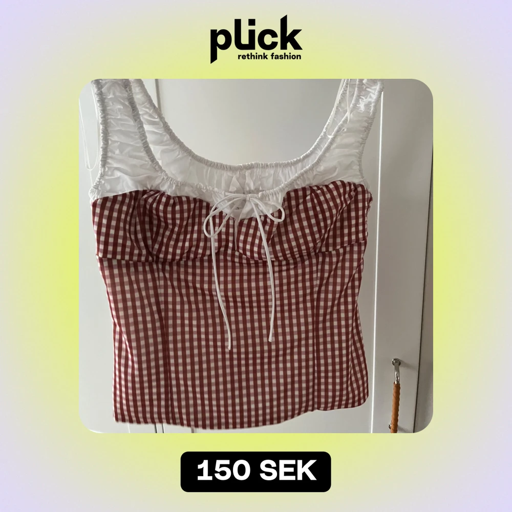 Säljer fin zara topp, rutig, röd! Super fint skick, S/M