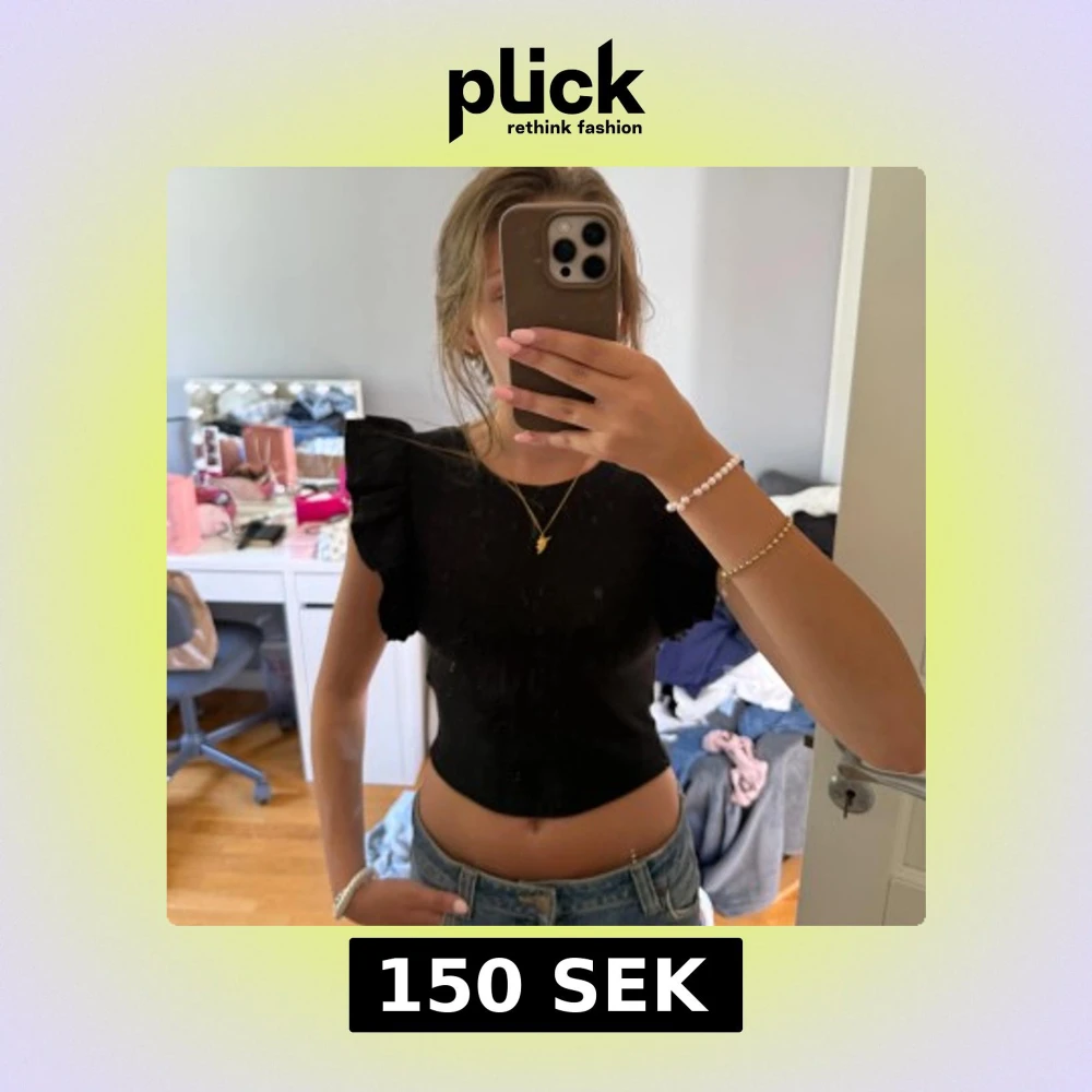 Svart croppad topp från Zara med volangdetaljer på axlarna. Perfekt ribbad topp till sommaren.