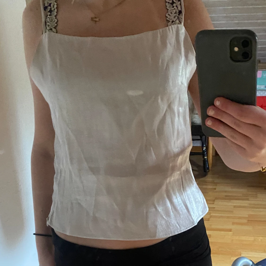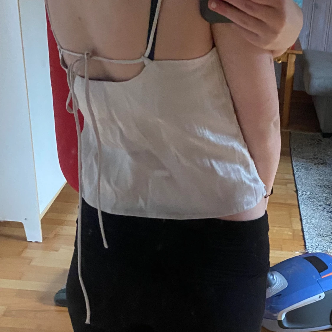Säljer detta fin linnet då den inte används!💘 som man kan se på bilden går det att ändra på banden där bak då man knyter själv! Den är även lite glittrig💋 Storlek är S. Köp gärna via köp nu!❣️