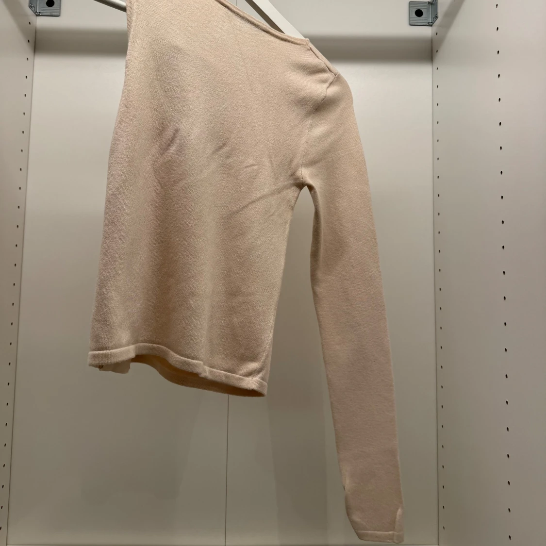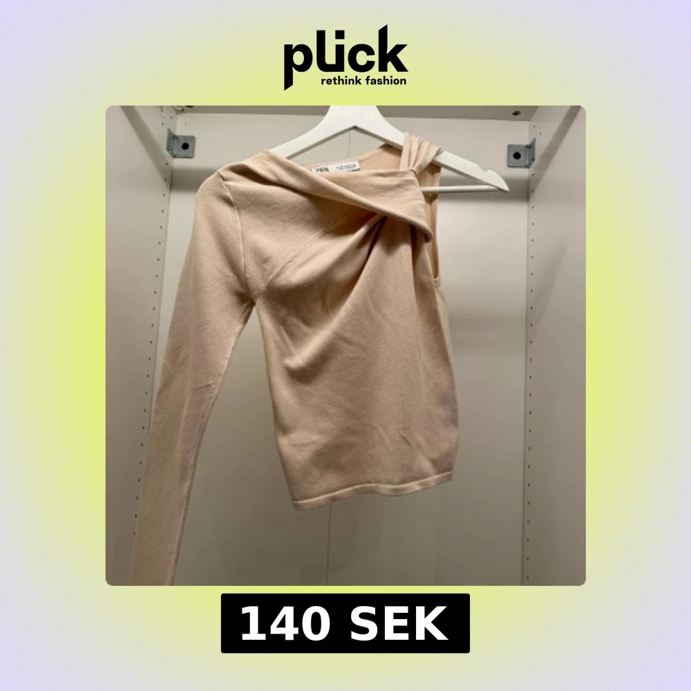 Säljer en beige oneshoulder topp från Zara med lång ärm och snygg drapering över axeln. Toppen har en stilren och modern look med asymmetrisk halsringning. Mjuk och skön kvalitet som passar perfekt till din garderob.
