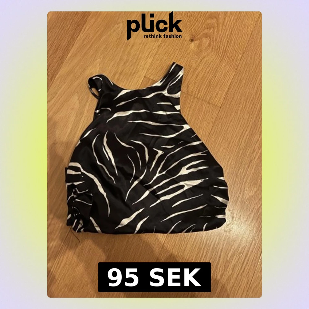 Jättesnygg topp med zebramönster i svart och vit. Toppen har smala axelband som korsas i ryggen med en rynkad detalj i sidan. Perfekt som festtopp!