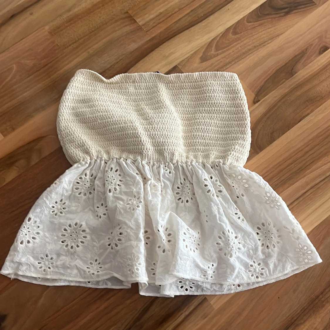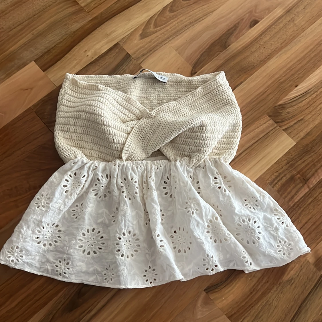 Supersöt beige tubtopp från Zara. Jag säljer min fina topp från zara som är helt ny utan prislapp!! Aldrig använd då den var för liten!! Jättefin skommartopp!!✨storlek XS!!