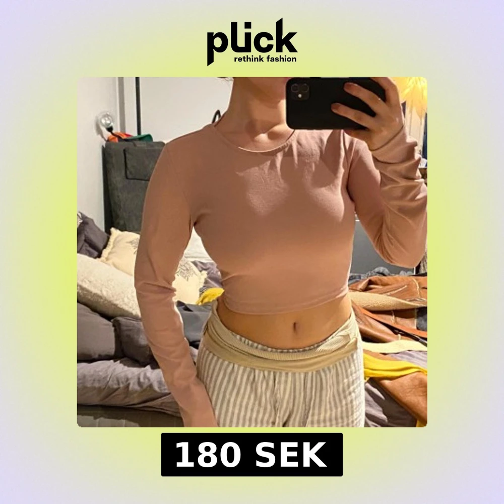 Säljer en snygg rosa croppad topp med långärmad design och öppen rygg. Toppen har en knytning i ryggen som ger en unik look. Perfekt för en trendig stil.