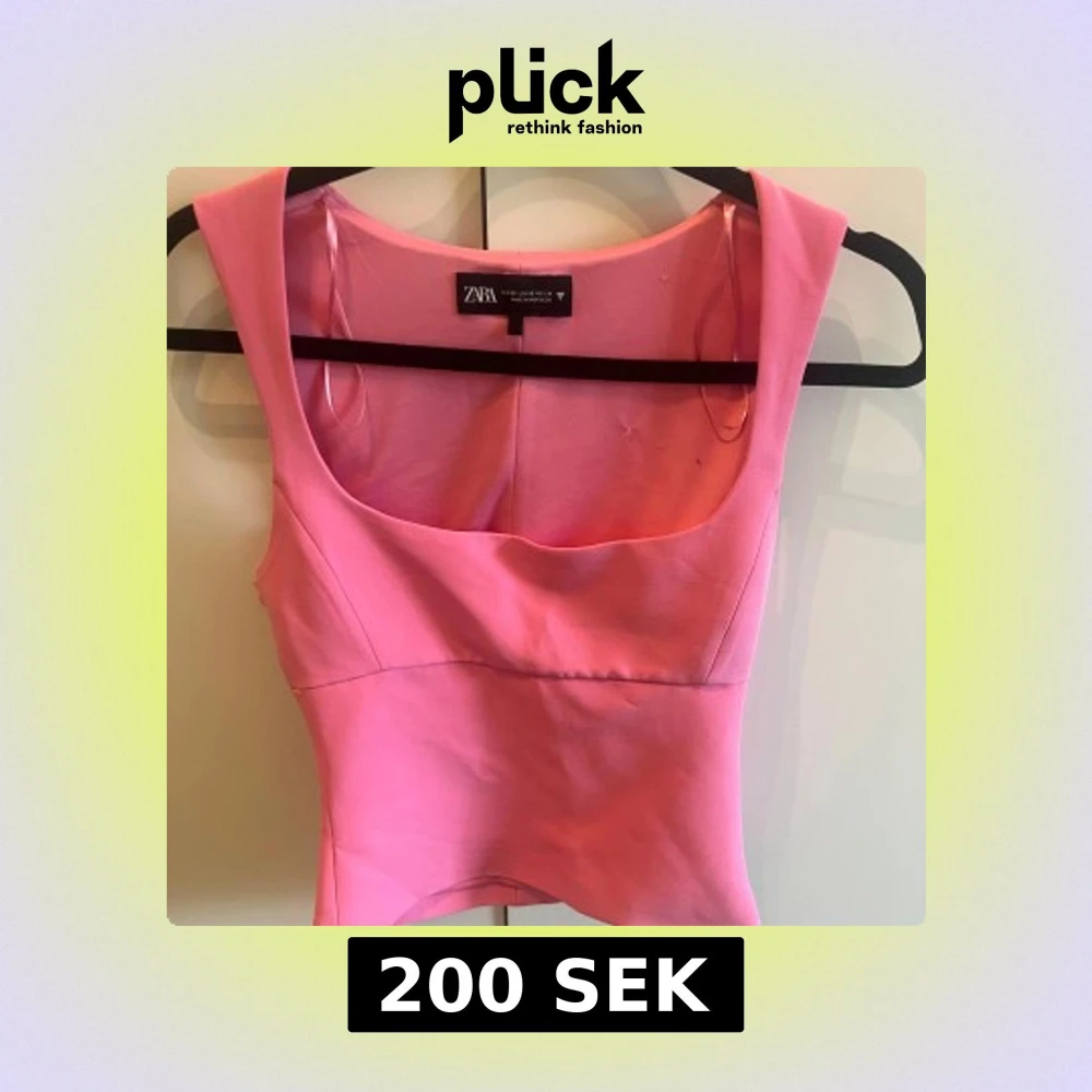 Snygg rosa croppad topp från Zara med breda axelband och fyrkantig urringning. Toppen har en figurnära passform