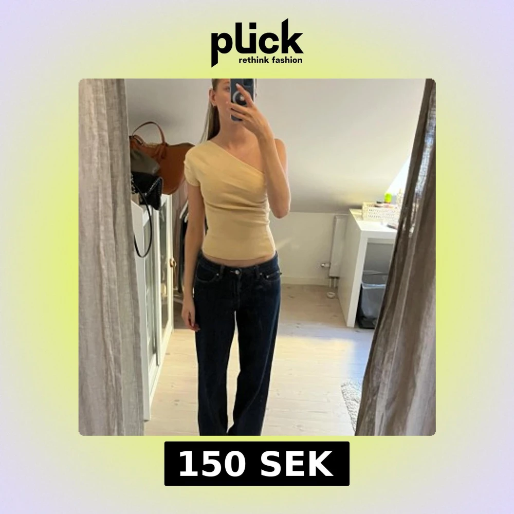 Snygg beige topp med one shoulder-design och tight passform. Toppen har en stilren look och är perfekt för att lyfta en outfit med sin asymmetriska skärning.
