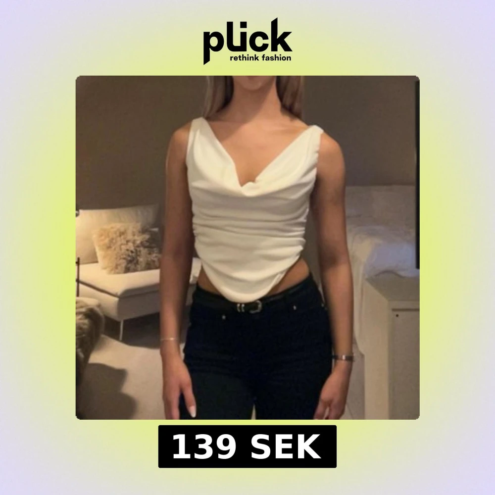 Säljer en vit croppad topp med snygg drapering och omlott-look både fram och bak. Toppen har breda axelband och en djup v-ringning.