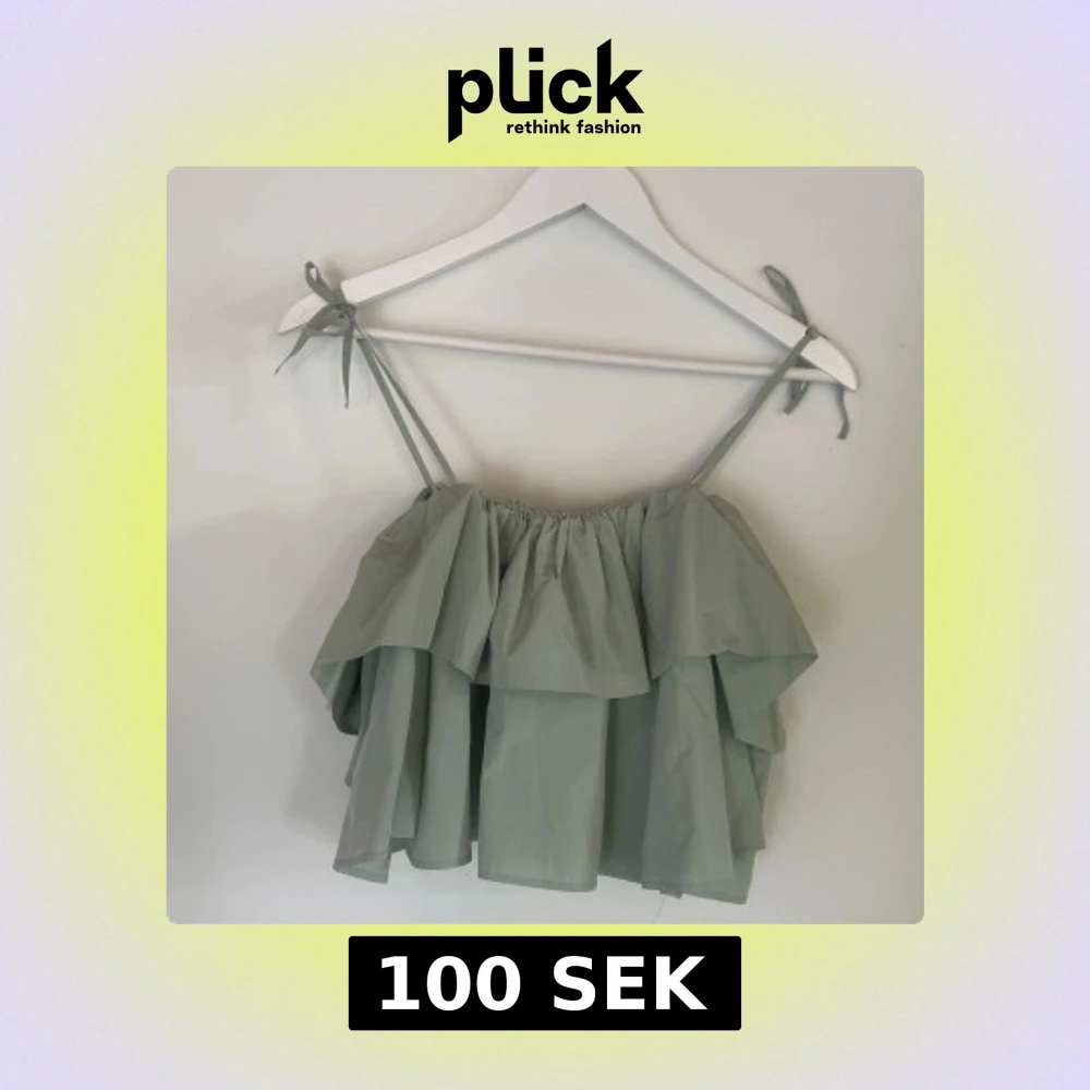 Superfin ljusgrön linnetopp från Zara med volanger och smala axelband som knyts upptill. Toppen är luftig och har en flowy passform, perfekt för varma dagar. Snygg att styla med jeans eller kjol för en trendig look.