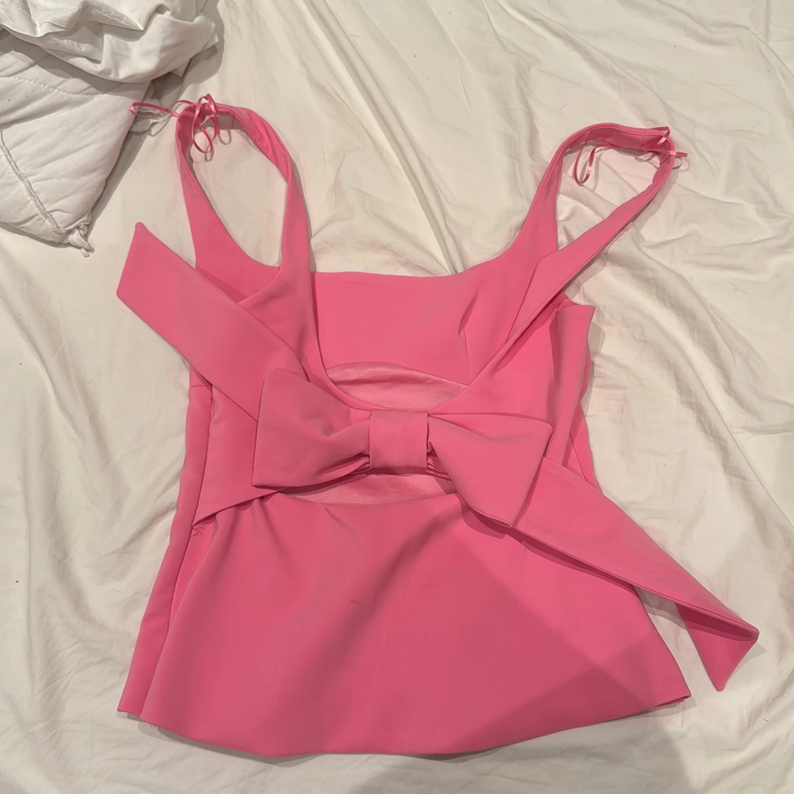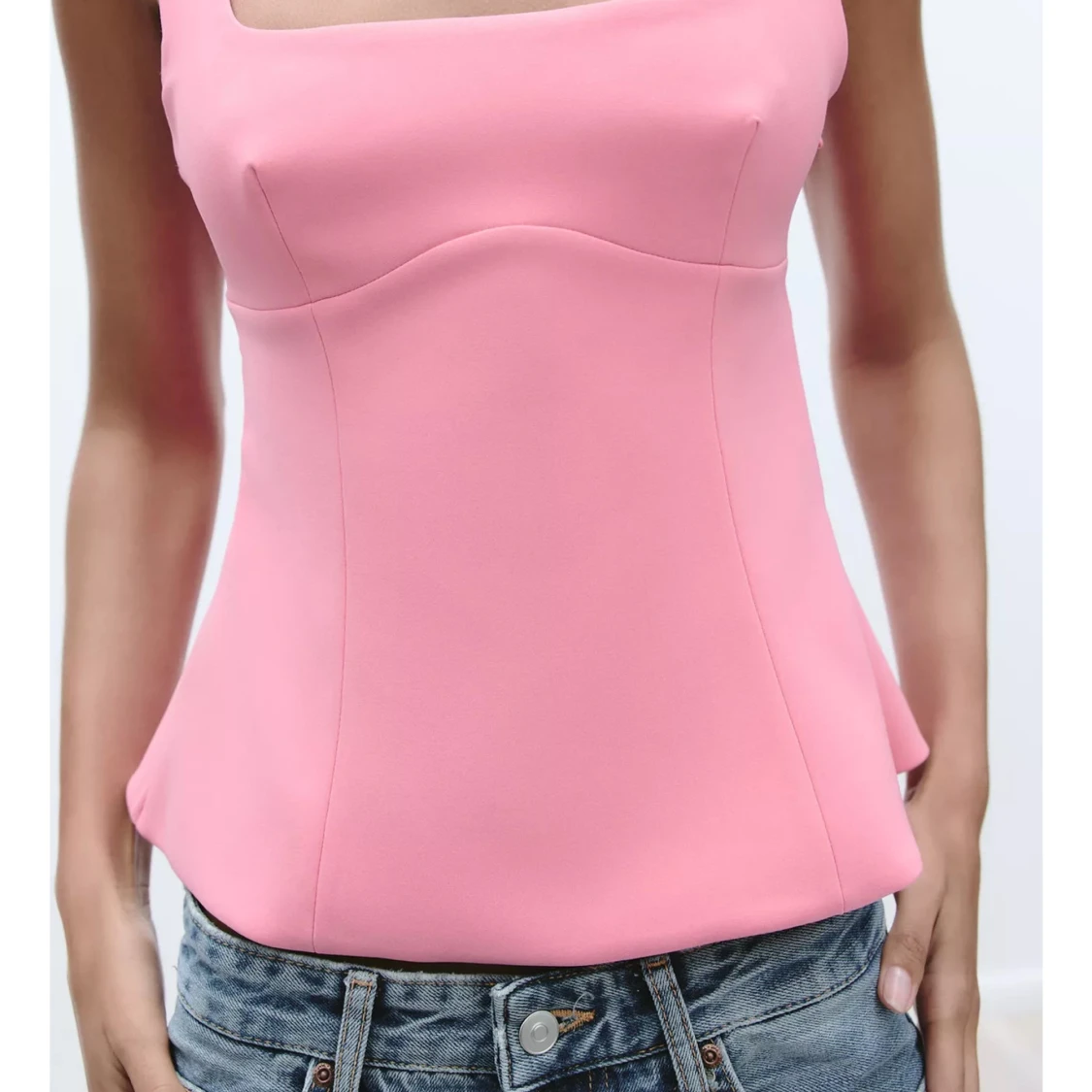 Supersöt rosa korsettopp från zara med breda axelband och en stor rosett i ryggen. Helt ny, aldrig använd. Säljer då den inte passar så bra på mig. Hör av er om ni har några frågor!💕