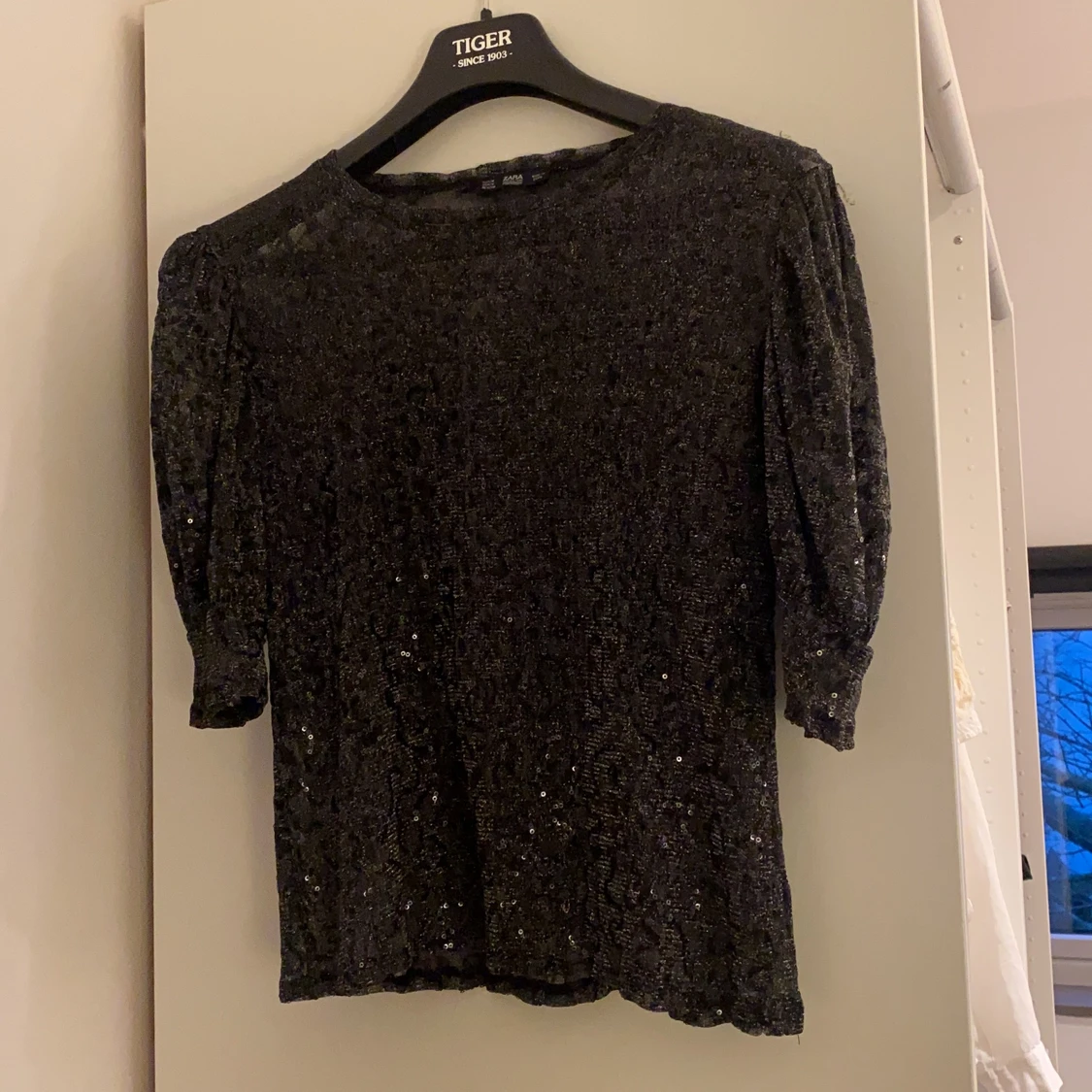Glittrig festtopp från Zara. Första bilden är med blixt och andra utan. Måttligt genomskinlig 💘