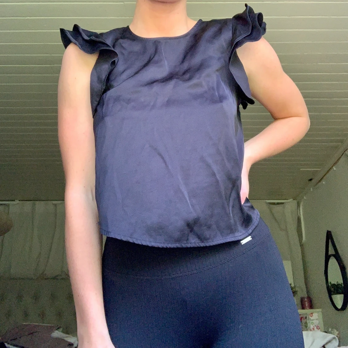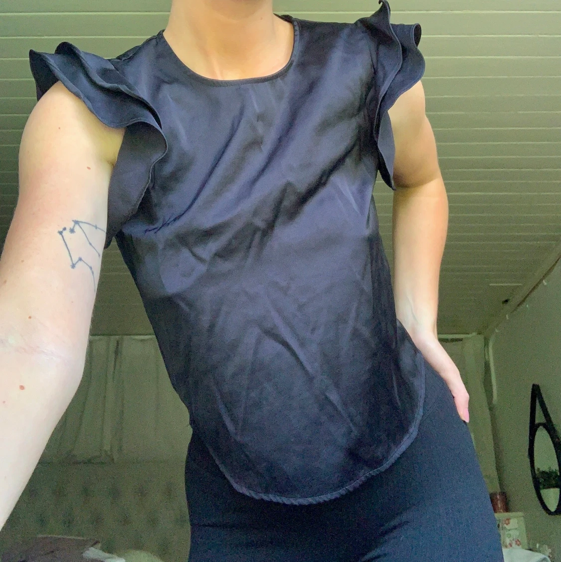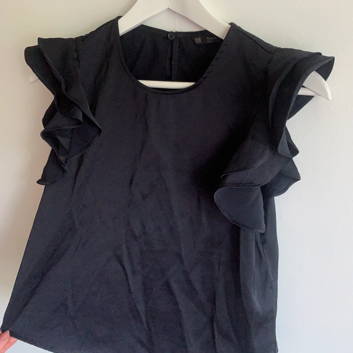 En svart/mörkblå blus från Zara! Perfekt till fester eller sommarkvällar. Knappt använd 💕☀️🎊