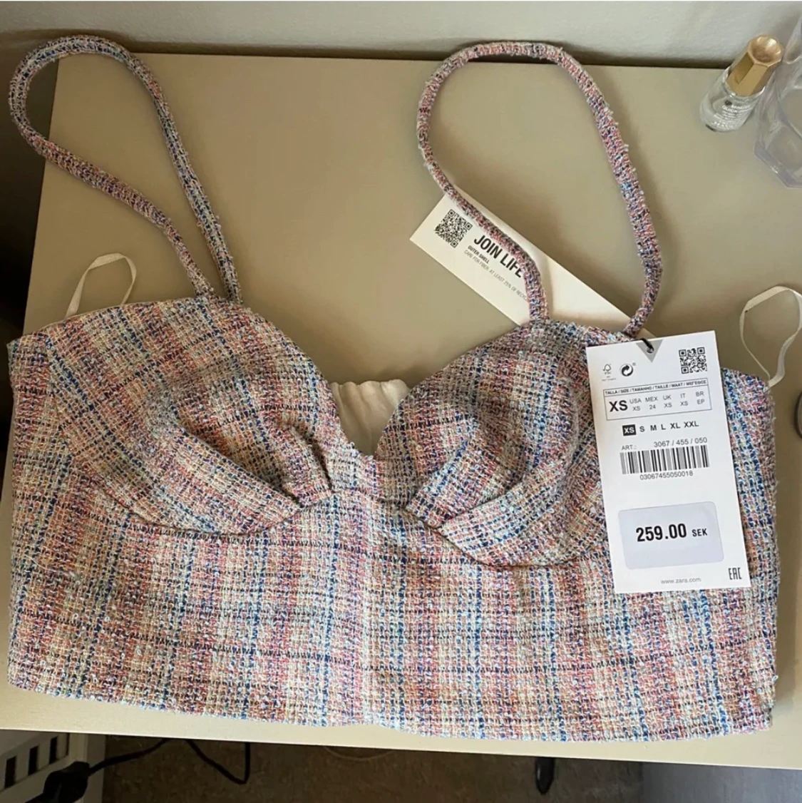 Söt topp från Zara! En korsettliknande modell. Säljer pga för stor för mig, aldrig använd med lapparna kvar. Rosa och blå i färgerna. Storlek XS, nypris 259kr. Skriv för fler bilder eller frågor!💗