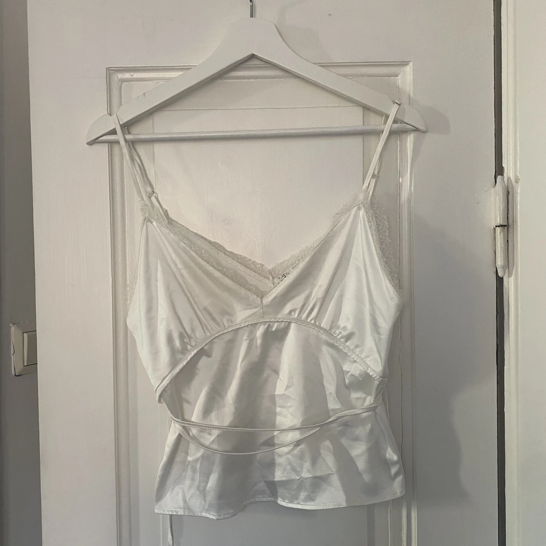 Ett vit spetslinne i satin från Zara. Använt endast 2 gånger och är i storlek S.