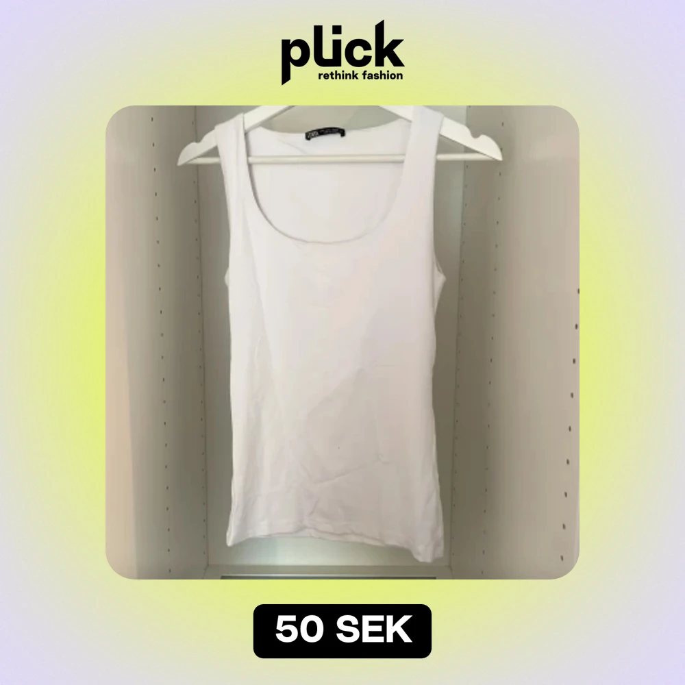 Vitt linne med en fin skärning i halsen. Använd fåtal gången och inga defekter. Är från Zara.